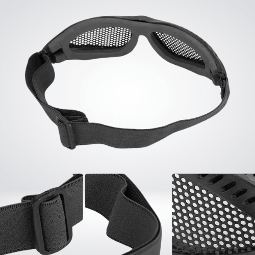 Perforated plastic lenses, creating a rugged, dystopian-inspired look.